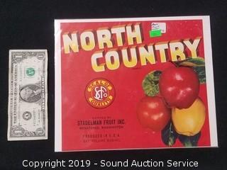 Lot #0030: Original Vtg. North Country Apple Fruit Label