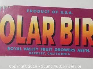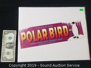 Lot #0027: Original Vtg. Polar Bird Fruit Crate Label