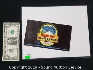 Lot #0026: Original Vtg. Wildcliffe Blueberries Fruit Label