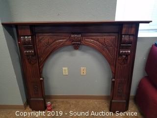 Lot #0077: Stunning Carved Mahogany Arched Fireplace Mantle
