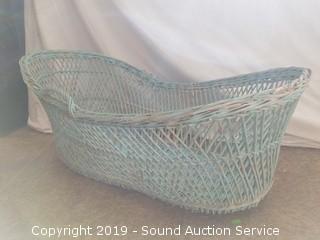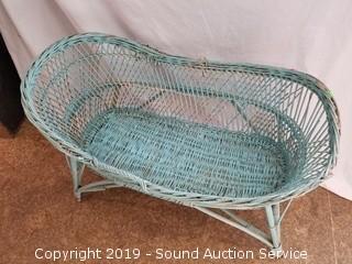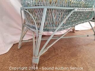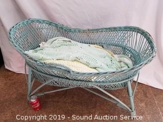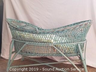 Lot #0080: Turquoise Wicker Woven Bassinet