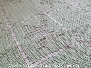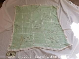 Item Description: With cushion & knitted blanket. 24" H x 34" x 22". Some wear to the paint finish.