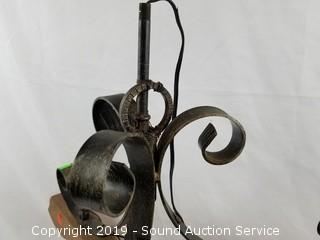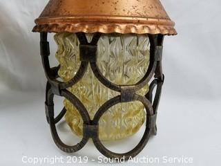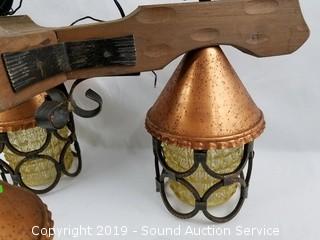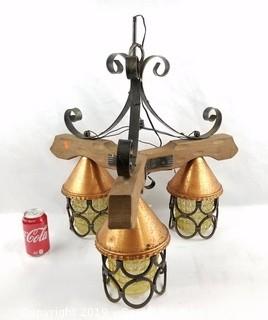 Item Description: Wrought iron, wood, copper, glass. 2 of the fixtures are not functioning. 25" H x 22" Dia.