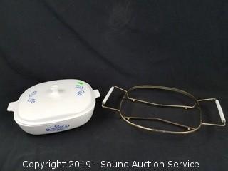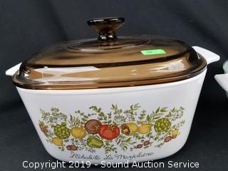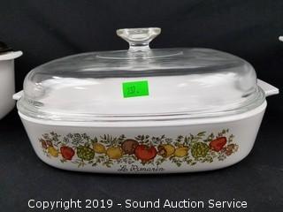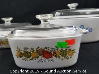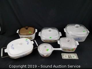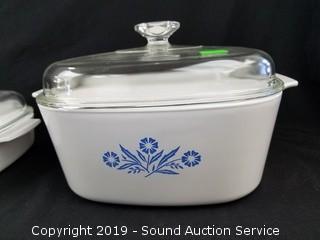 Item Description: Count includes lids. 4 are vegetable print, 2 are blue cornflower. Includes: 10" x 10" x 2", 3QT, 1.5 liter, and 5QT roasters.