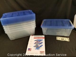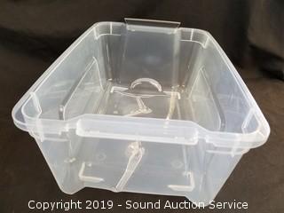 Lot #0332: 6 Clear Plastic Stackable Totes w/Lids