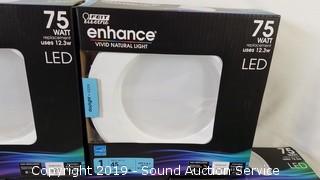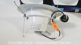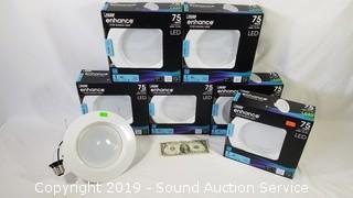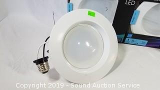 Item Description: 6 are NIP, all work, each package contains 1 recessed down light with trim. 12.3W, 925 lumens, 5000k color.