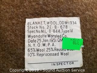 Lot #0318: 74" x 64" 1951 Military Wool Blanket
