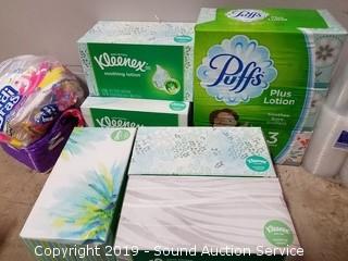 Lot #0336: 8 Boxes of Kleenex, Plastic Cups & Napkins