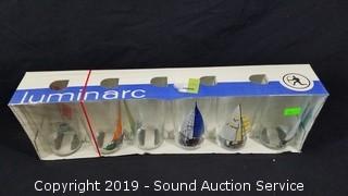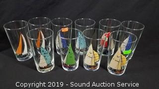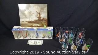 Lot #0254: Set of 16 Ship Print Drinking Glasses & Artwork