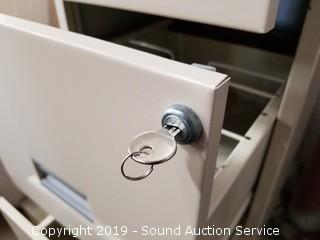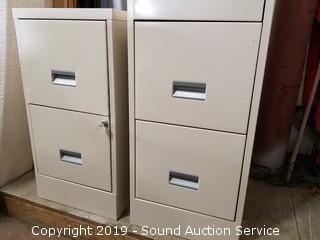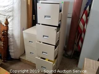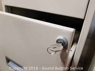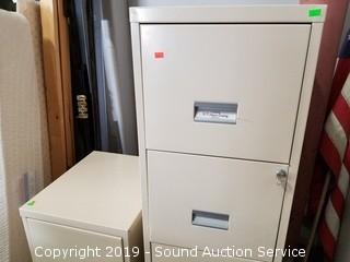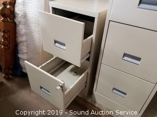 Item Description: Both are locking with matching key. Comes with some dividers, hanging files & file hanger hardware. 52" H x 15" W x 18" D & 29" H x 15" W x 18" D. Keys also work for next lot.
