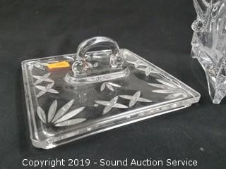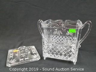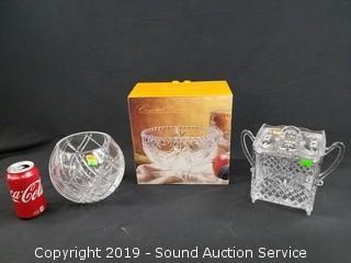 Lot #0060: 2 Beautiful Cut Crystal Bowls & Covered Glass Dish