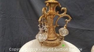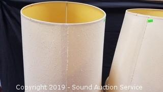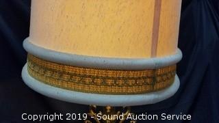Item Description: Both lamps work, one of the table/floor lamps is missing glass dangle piece & light in the base not working, probably just needs a new bulb. 55" H x 21" Dia.