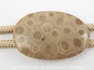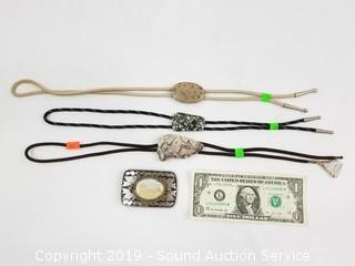 Lot #0104: 3 Polished Stone Set Bolo Ties & Belt Buckle