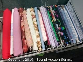 Item Description: Each drawer is loaded with fabric. Cabinet is approx. 48.5" x 15" x 25".
