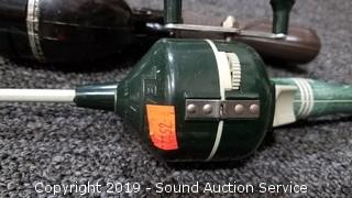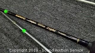 Item Description: 3 reels are Swift 660/F, 4'ft to 9'ft long poles. Zebco 4'ft rod with reel. Shimano AX Ultra Light 5'6" rod with 100Q reel. 9'ft 2pc rod with no reel. Shimano FX-2550 Ultra Light 5'6" rod with FX-100 reel. (2) 6'4" 2-pc rods no reel, one is a Diawa.