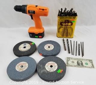 Lot #0129: 6" Grinding Wheels, Drill Bits & Cordless Drill