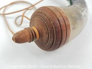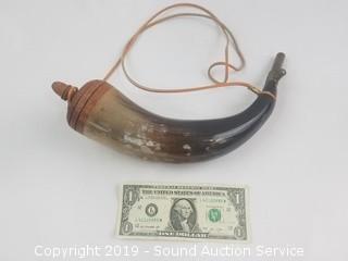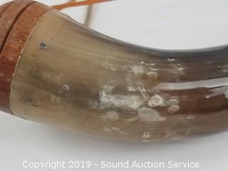 Item Description: Made from genuine bull's horn with leather strap. Approx. 13" long. In excellent working condition.
