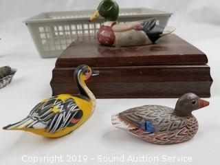 Lot #0067: Carved Wood Ducks, Card Box & Pencil Sharpeners