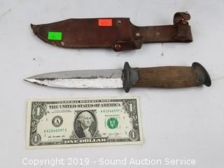 Lot #0098: Dagger w/Wood Handle & Leather Sheath
