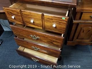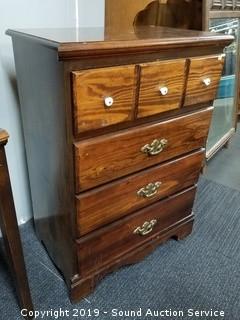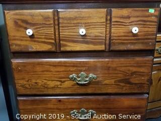 Lot #0013: Dark Stained Pine Finish 4-Drawer Dresser