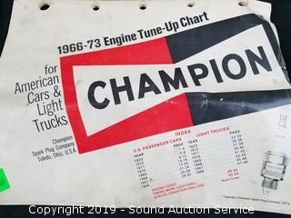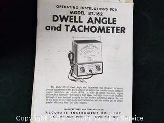 Item Description: Tachometer is Accurate Instrument Co. Model BT162, 2 Gal. Prestone Antifreeze both are full, vintage champion engine tune-up chart.