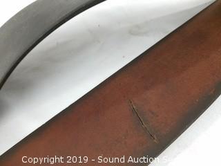 Item Description: Knife is fixed blade, 18" long with a 12" blade. Strop is a Barber's Special, Frost Cutlery Co, 24" long.