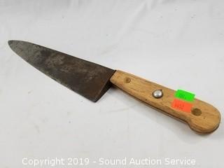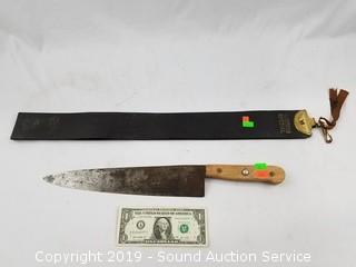 Lot #0100: Hand Forged Rustic Chef's Knife w/Leather Strop