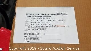 Item Description: Appears to be complete. . Includes 2-1/2" extension pipe, #1333 Welded Turbo Muffler, Left & Right 2-1/2" tail pipe, 2 tail pipe extensions, hardware kit.