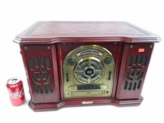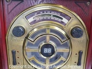 Item Description: Model 9209M. Can't get the CD player to open, the tape player works but is slow (possibly needs cleaned), rest works as intended. 13" H x 21" x 14".