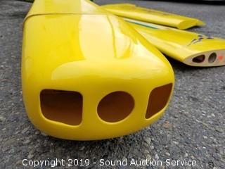 Item Description: One is just the body no engine or electronics, other has engine and electronics but has a hole in the right wing & rear right wing. Approx. 6'ft wingspan, 66" long.