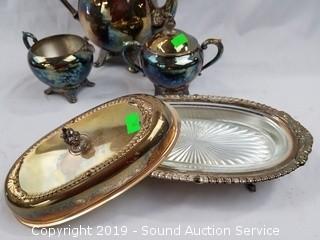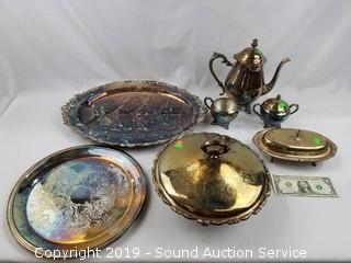 Lot #0091: Silverplate Tea Set & Other Serving Pieces