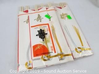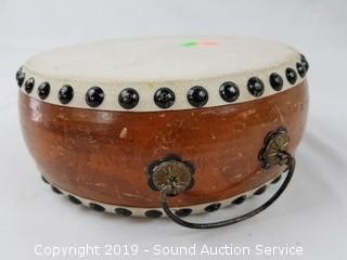 Item Description: Chinese hand drum, 8" drum, several packages of chopsticks, 70" x 50" table cloth.