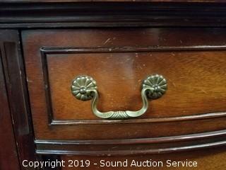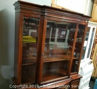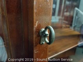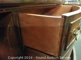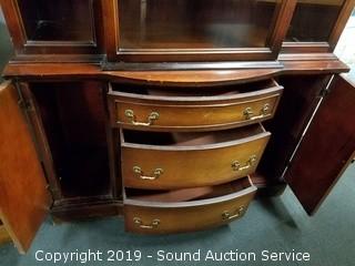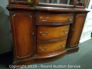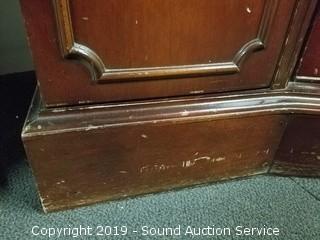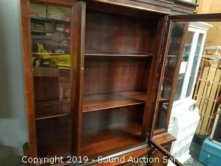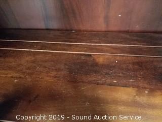 Item Description: 71" H x 45" W x 16" D. Some wear, scuffs, scrapes, overall good condition. Plate grooves in the shelves, Dovetail construction.