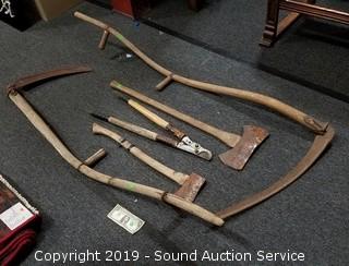 Lot #0330: Vtg. Scythes, Loppers & Axes