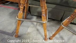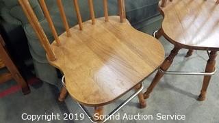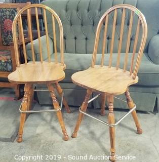 Lot #0023: 2 Oak Swivel Counter Height Chairs