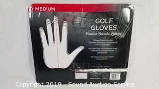 Item Description: Size medium. Left hand glove for the right hand golfer. Ball marker included. All look new.