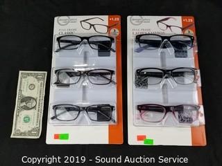 Lot #0229: 6 Pairs Design Optics +1.25 Reading Glasses
