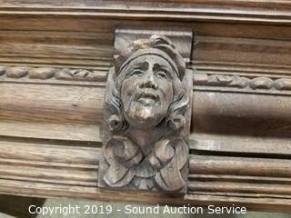 Item Description: Two busts are carved into the trim. 78" x 11" x 7". Fits around a 69" x 5.5" space.