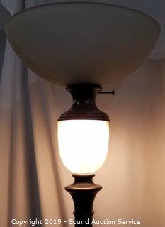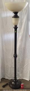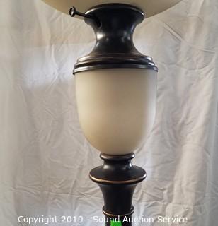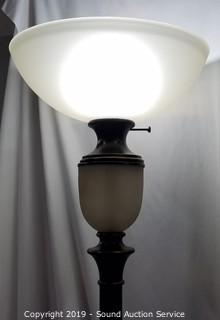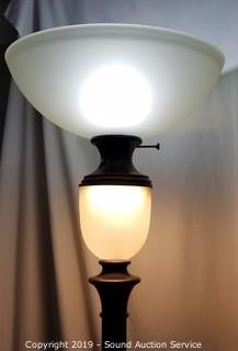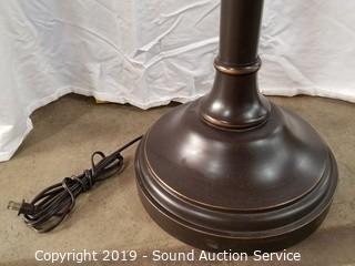 Lot #0101: Bronze Finish Glass Shade Floor Lamp