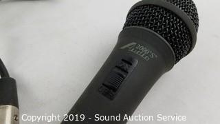 Item Description: Comes with Audio 2000 Dynamic mic ADM-106, XLR and instrument cables and tripod. Everything works, does not come with power cord. Can run off of 6 "D" batteries.