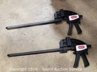 Item Description: Includes (2) 12" rail clamps. One corner has a break