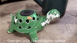 Item Description: Includes 2 watering can planters, turtle and gnome figures, garden tile and 2 bird bath bases.