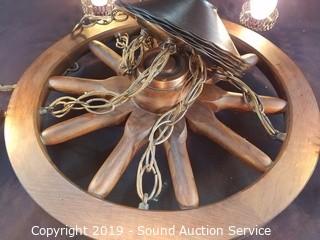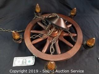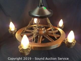 Lot #0085: Wagon Wheel Hanging 5-Light Lamp
