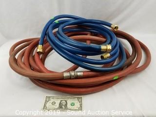 Lot #0251: (2) 10ft Blue Hoses & 25ft? Red Hose