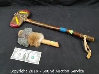 Lot #0033: 2 Primitive Native Handcrafted Stone Axe Decor