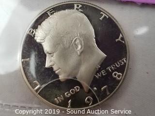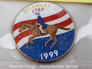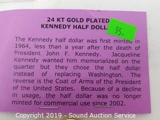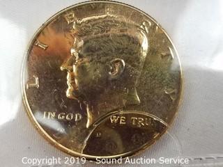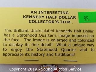 Item Description: 2000 24KT Gold Plated, BU 1999 Painted with Delaware Statehood quarter image & 1978 Gem proof Kennedy half dollars. ATTN: We are not coin experts or graders, please use your own judgement when bidding.