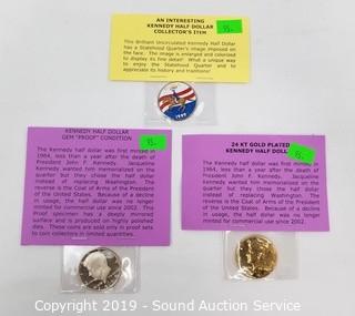 Lot #0095: 3) Collectible Kennedy Half Dollars