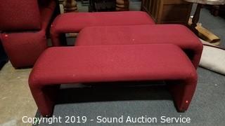Lot #0168: 3 Corinthian Studios Red Fabric 4'ft Benches
