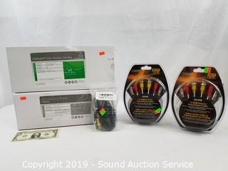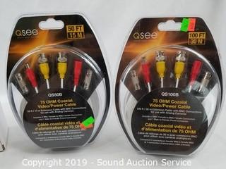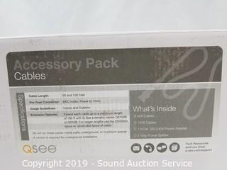 Item Description: Looks to be brand new and complete. Accessory kit with 2) 60'ft cables & 2) 100'ft cables, 1) 12V/3A 100-240V power adapter, 1) 4-way splitter. 2) Q-See 50'ft wiring kit for 1) cameras, kit includes 75 OHM Coaxial Video/Power cable, 2 BNC Female to BNC female connectors & 1 male to female power connector.