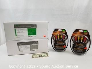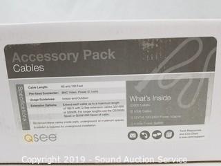 Item Description: Looks to be brand new and complete. Accessory kit with 2) 60'ft cables & 2) 100'ft cables, 1) 12V/3A 100-240V power adapter, 1) 4-way splitter. 2) Q-See 50'ft wiring kit for 1) cameras, kit includes 75 OHM Coaxial Video/Power cable, 2 BNC Female to BNC female connectors & 1 male to female power connector.